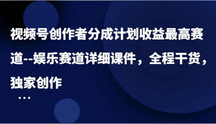 视频号创作者分成计划收益最高赛道–娱乐赛道详细课件,全程干货,独家创作,把握娱乐赛道的无限商机,加入我们,让每一条视频都成为你的财富密码!独家课件,实战技巧,助你轻松实现月入过万,开启你的视频号创富之旅!”